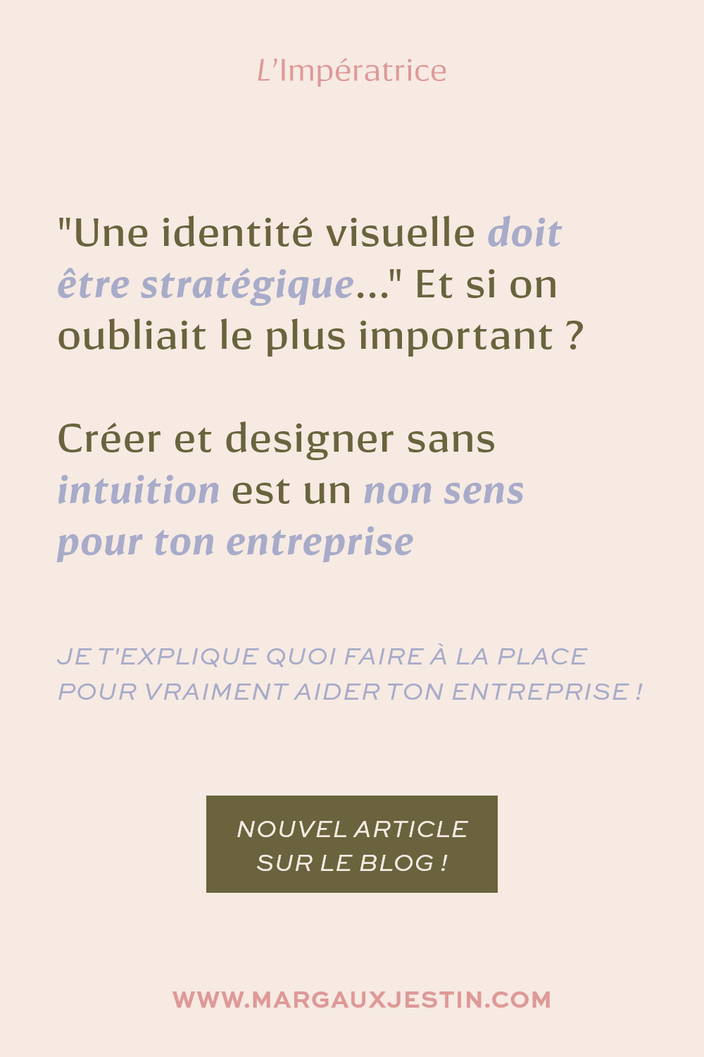 Et je peux enfin passer à la suite et me laisser porter par mon intuition autant que le concret. Je crée à partir de ce que j’ai lu de toi, de ce qui est ressorti. Je laisse mes ressentis me porter, et je les cadre avec la stratégie.