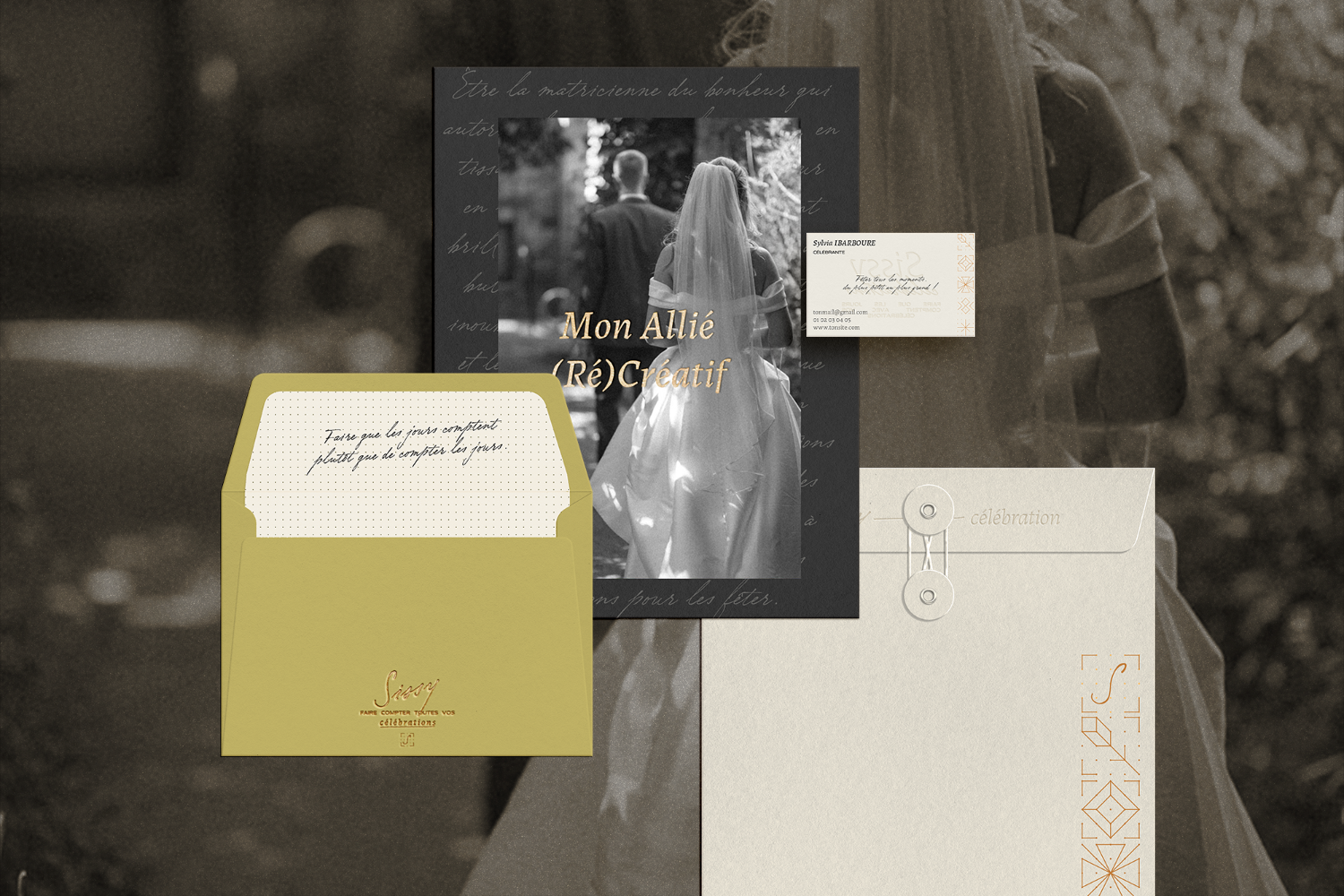 J’ai travaillé la notion de tissage avec des icônes en point de croix : Sylvia tisse les histoires comme une tisserande. A ça, j’ai ajouté des polices qui mettre en valeur toutes ses facettes : pep’s, avec ce qu’il faut de sérieux et célébration !